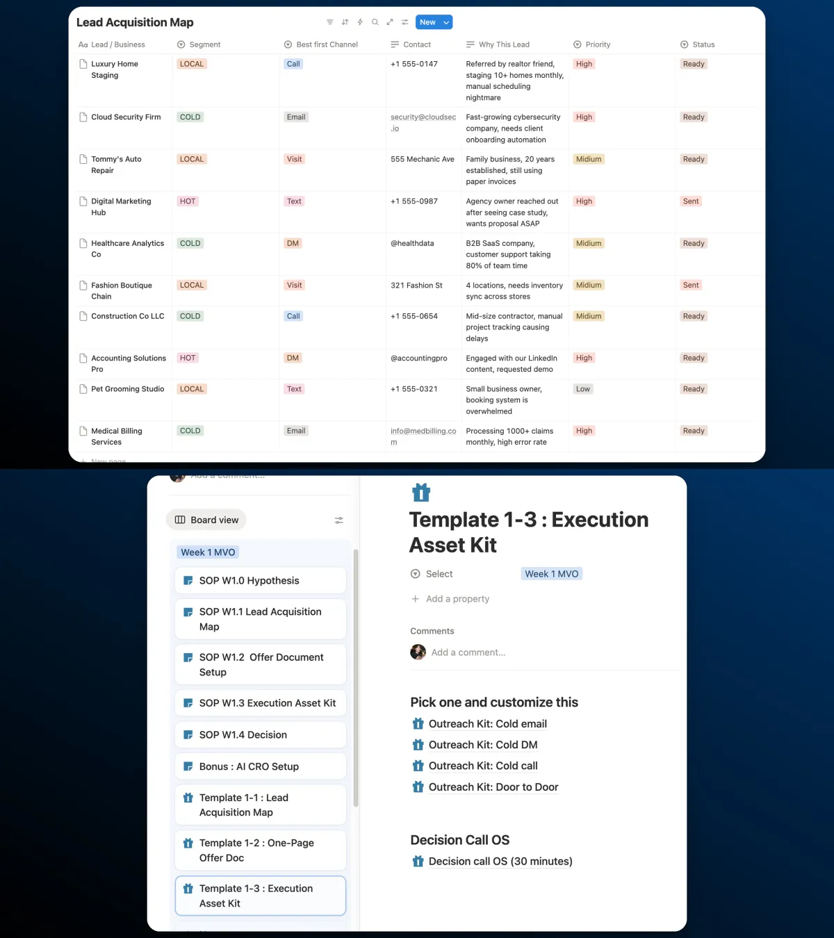 Ready-to-deploy outreach, follow-up, and conversion flows that match the execution order. You’re installing what works, not starting from scratch.